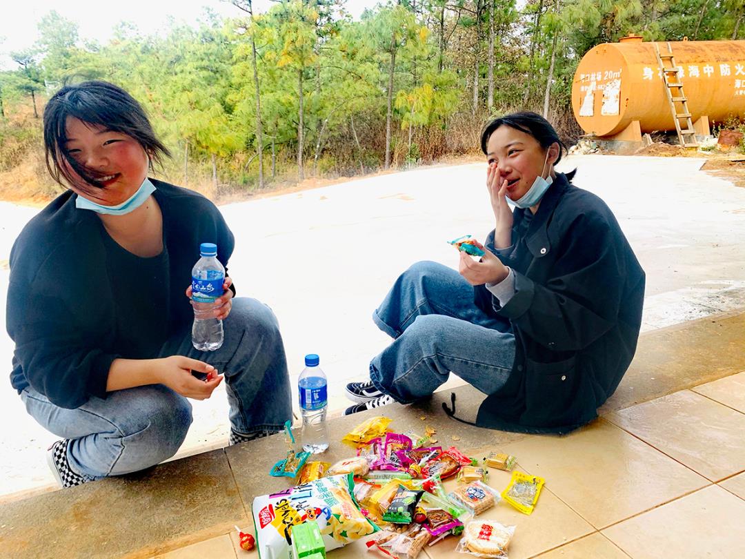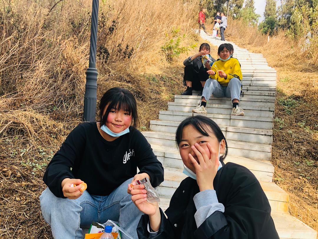 不知不覺太陽開始西偏,同學們也成功登頂,瞭望塔前一個個都因沖刺山頂而面紅耳赤,但是登頂?shù)南矏偪M繞在每個人的心里與笑容上。