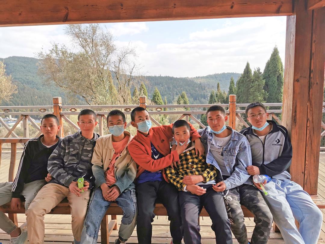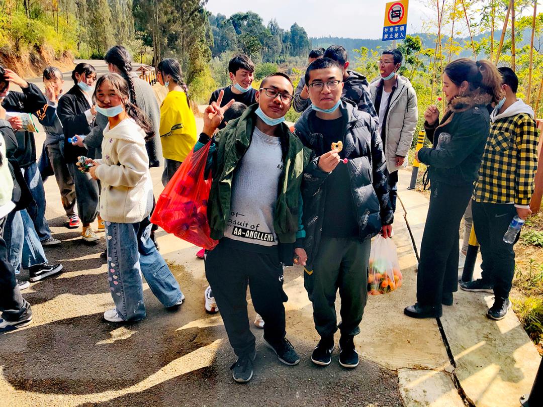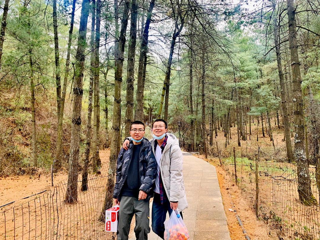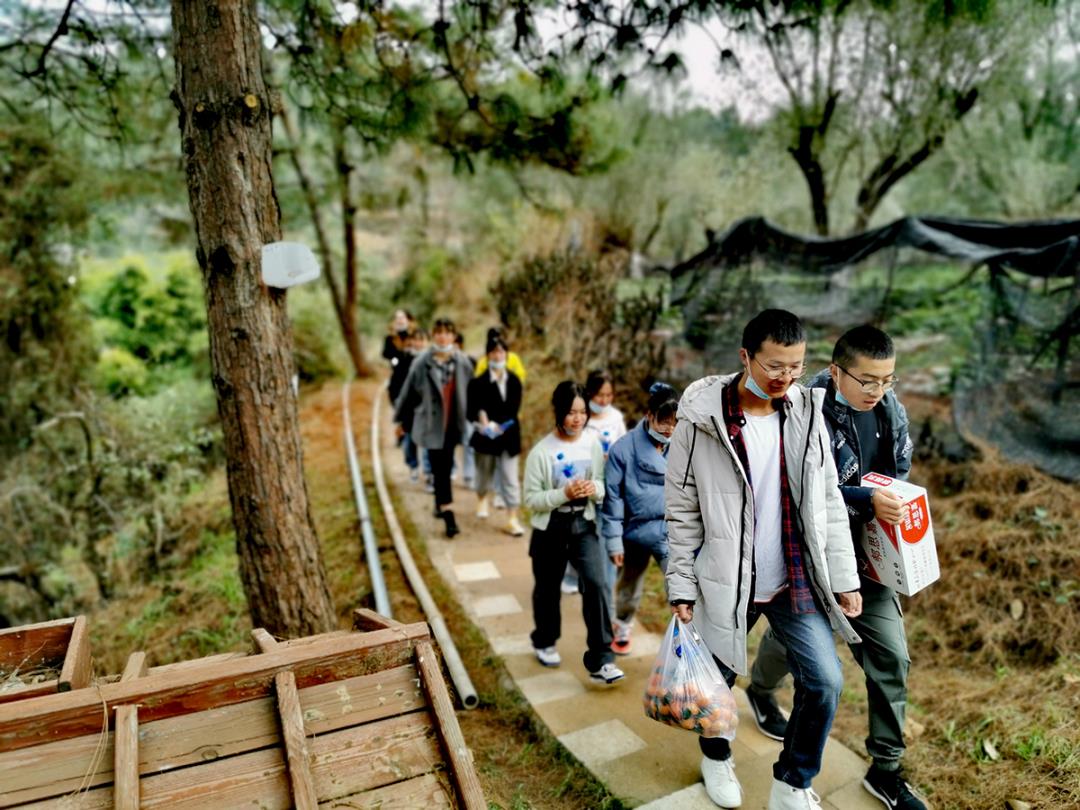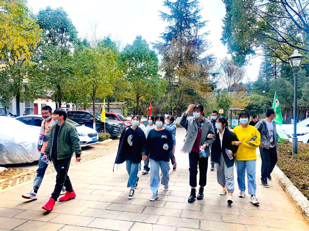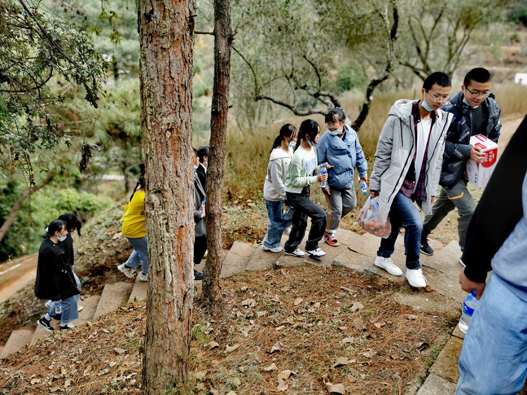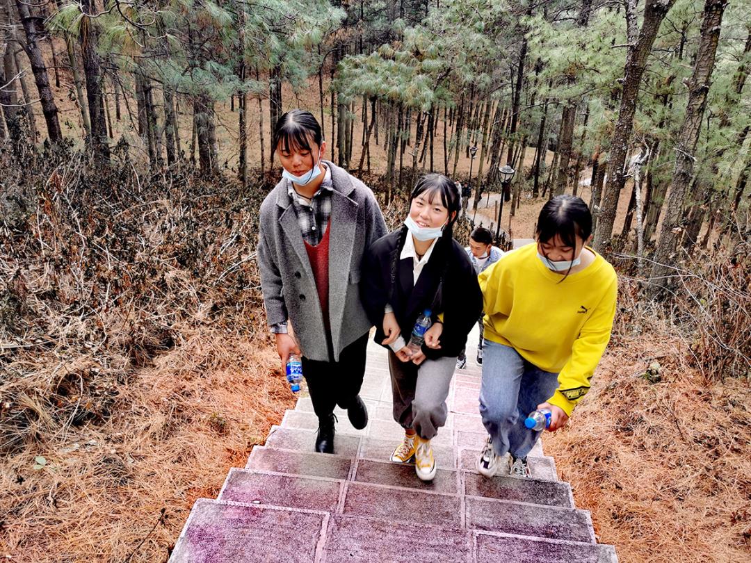走在靜謐林道上,雖然綠色的生機顯得很有限,但是老師與學生們的情感是融洽無限的,“緊跟著老師的步伐,這段路途我們不再迷茫與無聊”有同學喊著,嚷著。