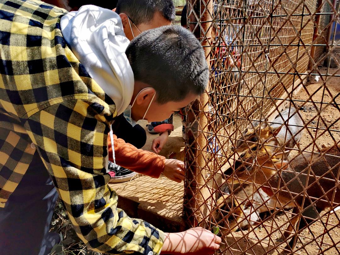 美女與野獸?不,那是兩位小可愛。走過了葡萄園,走到了珍惜野生動物園時,可愛的小動物吸引住了大家的目光,看看這些小可愛,同學們的童心又蹦出來了,再看看老師,正在介紹動物與指導同學們正確參觀。