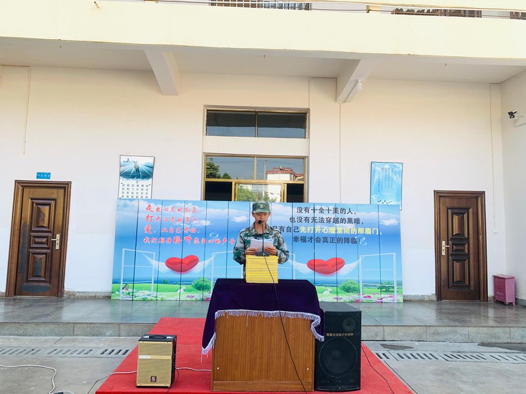 當背景音樂響起,全校師生和畢業(yè)生家長全部到場。主持人劉智教官宣布畢業(yè)典禮正式開始。