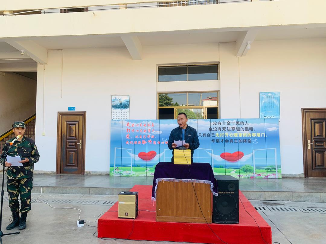 盧濤和陳宸同學向全校同學向起點道別,向老師道別,向這一段不能忘懷的歲月道別。他們向老師和教官深深地鞠上一躬給老師教官一個深情的擁抱,感謝老師這短短的幾個月的孜孜不倦的教誨、感謝教官日日夜夜的陪伴辛勤培。